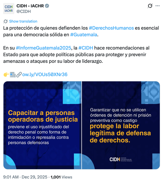 Social media outreach strategies for the main takeaways of the IACHR's Report on the Human Rights Situation in Guatemala, and the coverage of the 194th Period of Sessions of the IACHR, a series of public hearings addressing human rights violations.